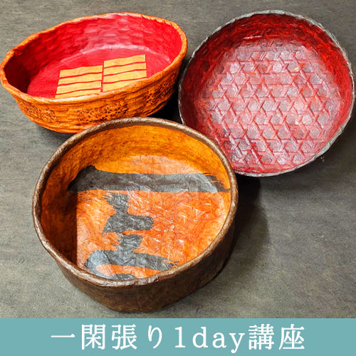 持ち物:かごやザル1個、刷毛2本(2~4cm)、定規(30cm程度)、クリアファイル1枚、新聞紙、ボール2個(のり溶き用と水用)