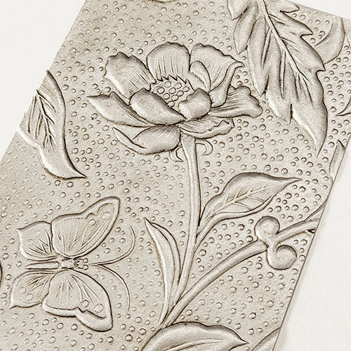 金唐革紙 ハガキ 蝶と花 銀箔+古色