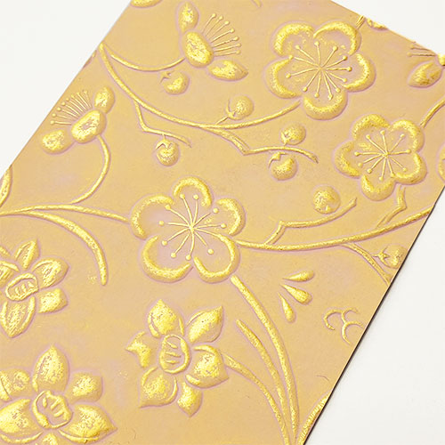 金唐革紙 ハガキ 四季文様 梅・水仙 彩色(ピンク+金)