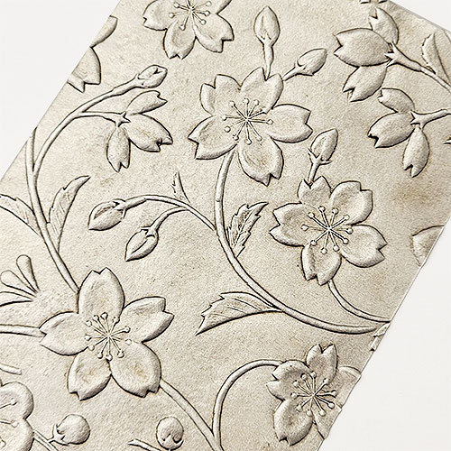 紙の温度 - 金唐革紙 ハガキ 四季文様 桜 銀箔+古色