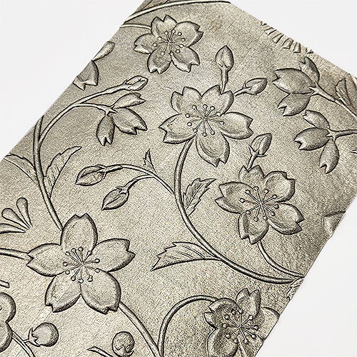 金唐革紙 ハガキ 四季文様 桜 錫箔+古色