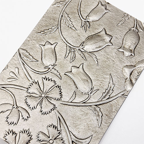 金唐革紙 ハガキ 四季文様 ほたるぶくろ・なでしこ 銀箔+古色