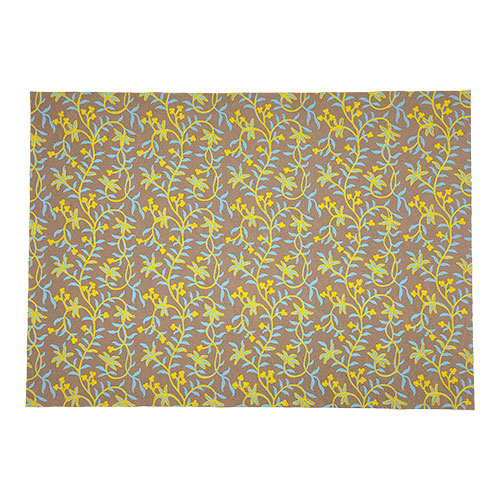 紙の温度 - ししゅうP茶地水色 黄刺繍 つた文様