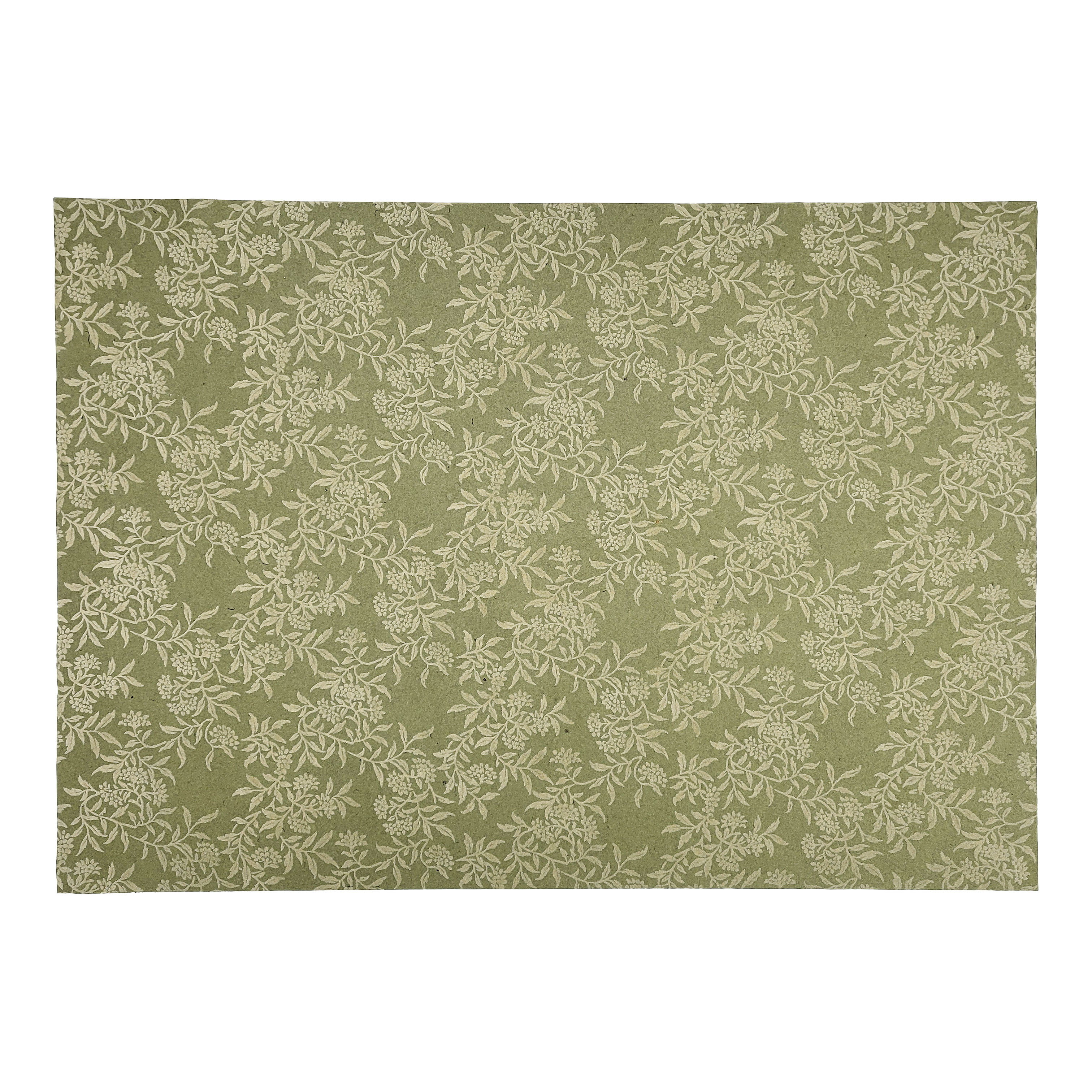 紙の温度 - 起毛紙 モスグリーン地ベージュ 植物