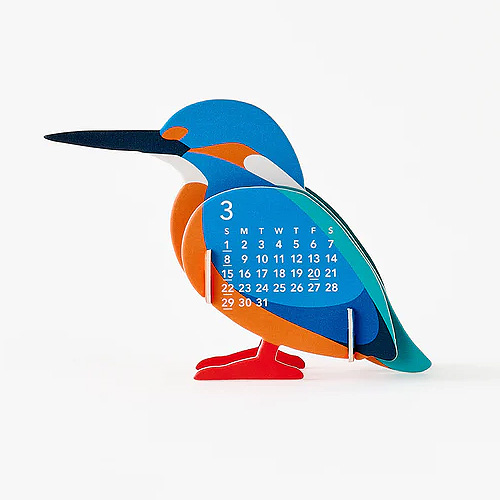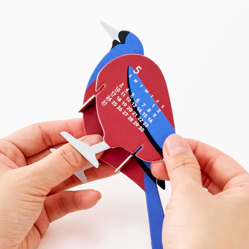 のりやハサミなどを使わずに、簡単に組み立てることができるペーパーキットカレンダーです。6種類の鳥がセットされており、パーツを台紙から取り外して鳥を組み立てると、2か月表記のカレンダーになります。アメリカ、ヨーロッパなど海外の美術館、博物館でも大変人気の高い商品です。